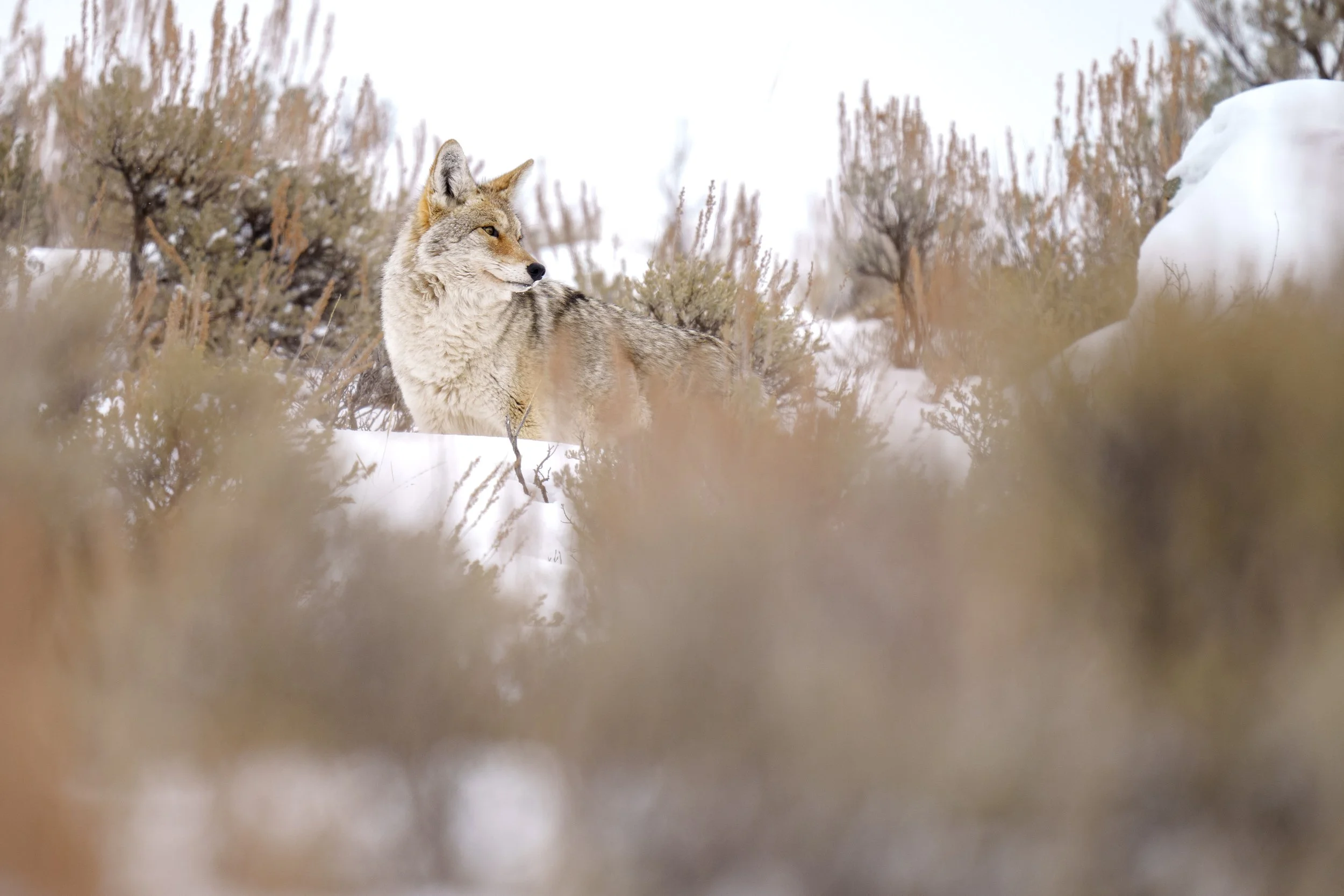 Once, in Yellowstone, I lied motionless in the snow while a coyote worked her way toward me. She knew I was there. Our eyes had connected multiple times. But she assessed the situation and determined I wasn’t a threat, trotting so close to me that I could see the individual hairs along her spine.