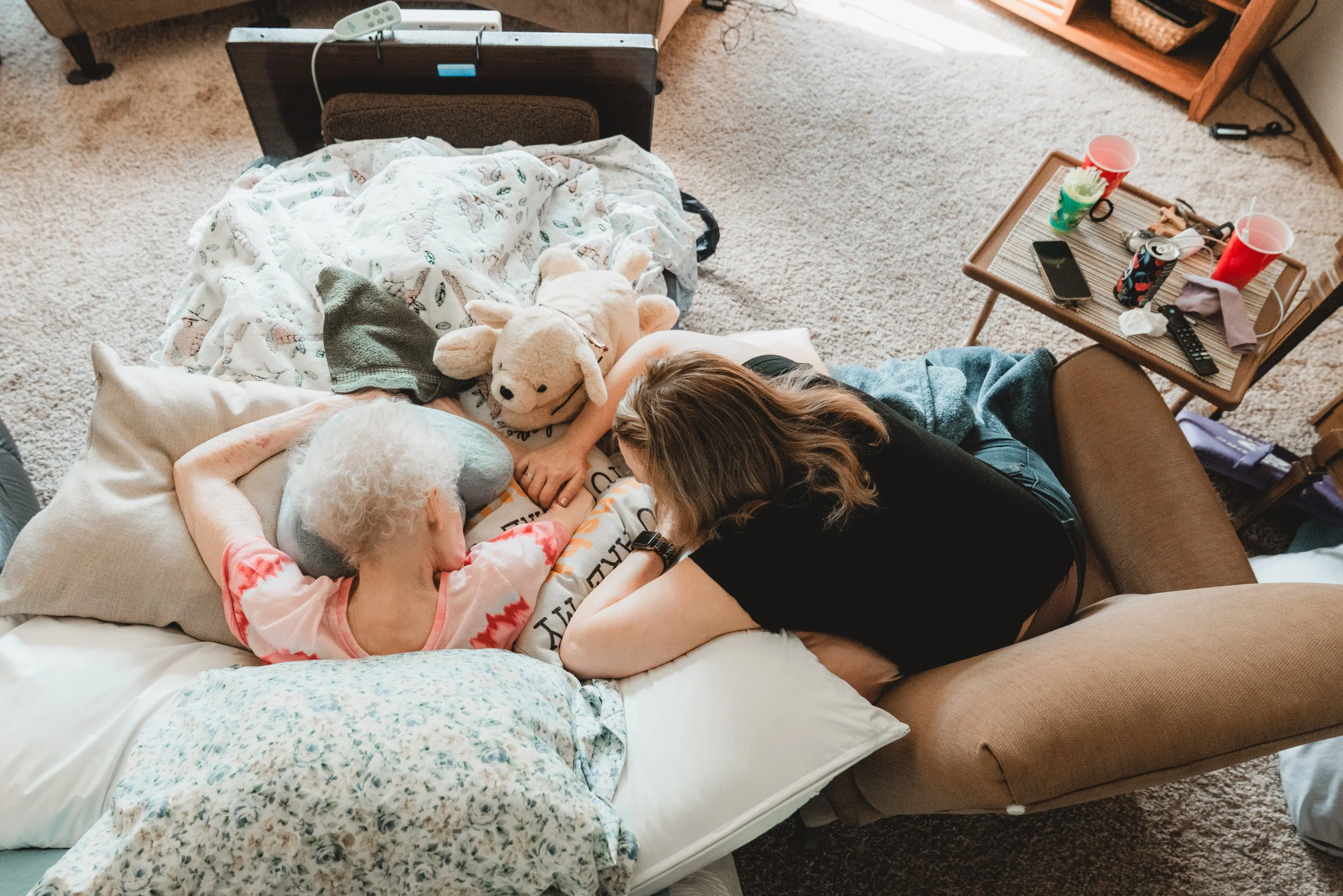 Checking vitals, adjusting pillows, managing medications that you know will buy some comfort but not time. My cousin and I traded shifts, held her hands, sat with her through the long afternoons. Some days the weight of it all felt unbearable — watching someone you love diminish to a fraction of who you know them to be, yet there is nothing you can do to stop it.