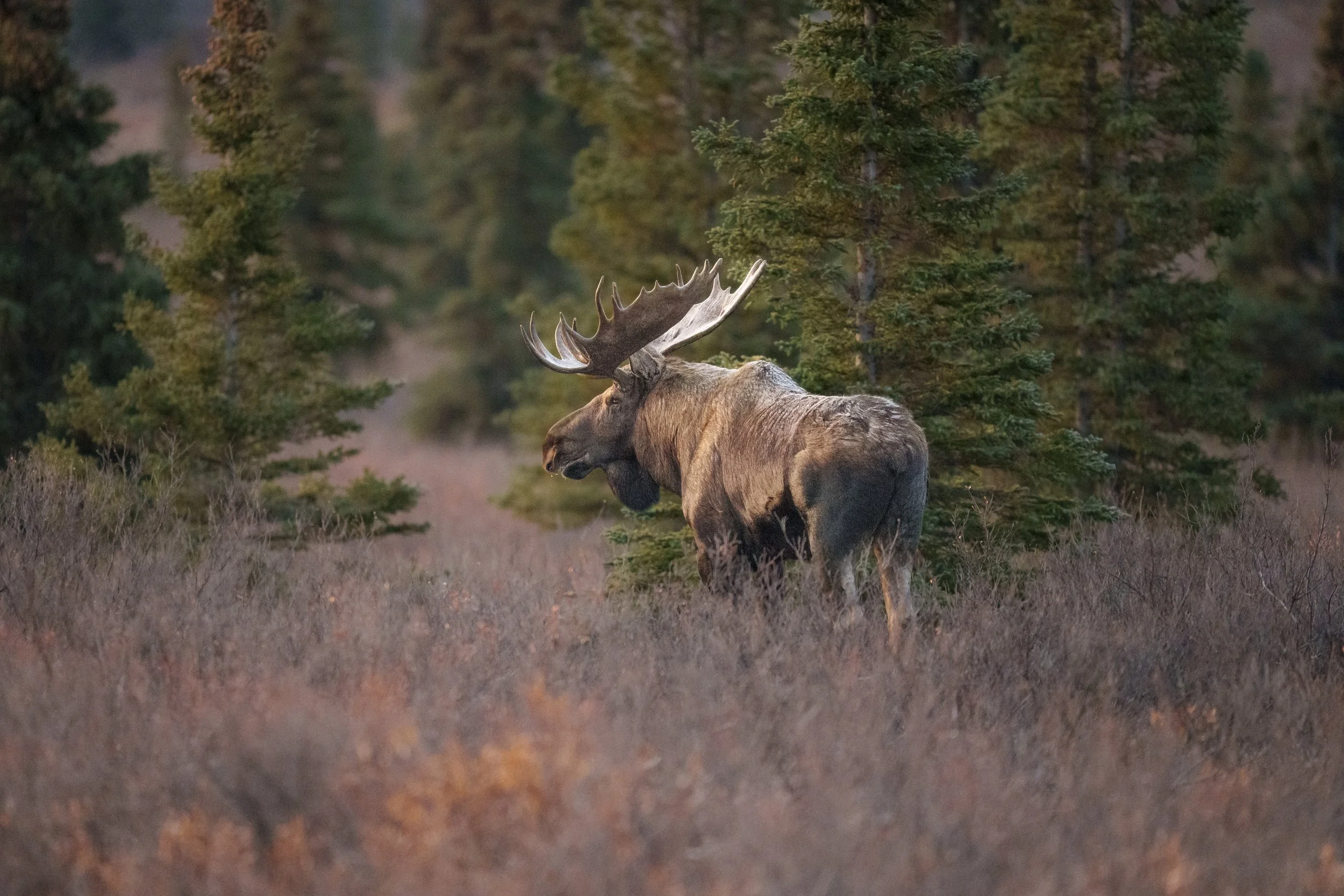 Bull moose in Denali National Park photographed at ISO 20,000 without any AI-based noise reduction or assistance